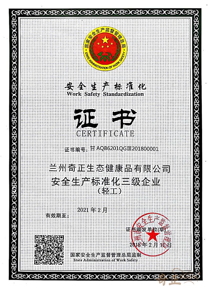 安全生產(chǎn)標(biāo)準(zhǔn)化三級(jí)證書(2018.2)