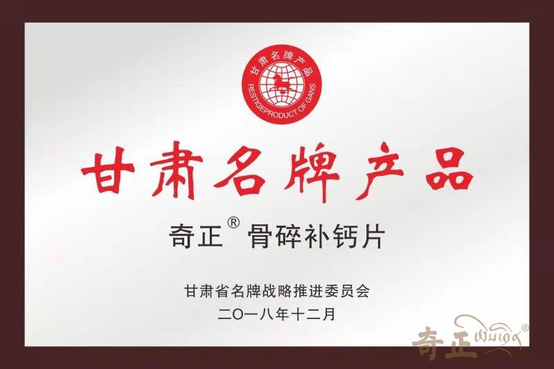 奇正骨碎補鈣片獲甘肅省名牌產(chǎn)品