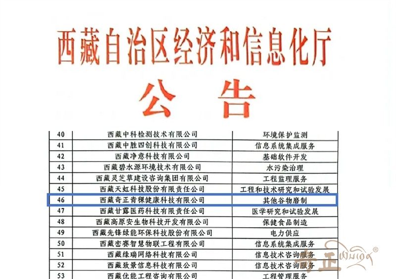 近日,西藏奇正青稞健康科技有限公司以創(chuàng)新之名,榮膺認(rèn)證創(chuàng)新型中小企業(yè)的殊榮,這一榮譽(yù)是公司過(guò)去十余年在青稞產(chǎn)業(yè)的卓越貢獻(xiàn)與創(chuàng)新精神的體現(xiàn)。公司不僅贏得了市場(chǎng)的廣泛認(rèn)可,更是獲得了官方對(duì)其深耕高原特色農(nóng)產(chǎn)品、推動(dòng)地區(qū)經(jīng)濟(jì)發(fā)展努力的肯定。