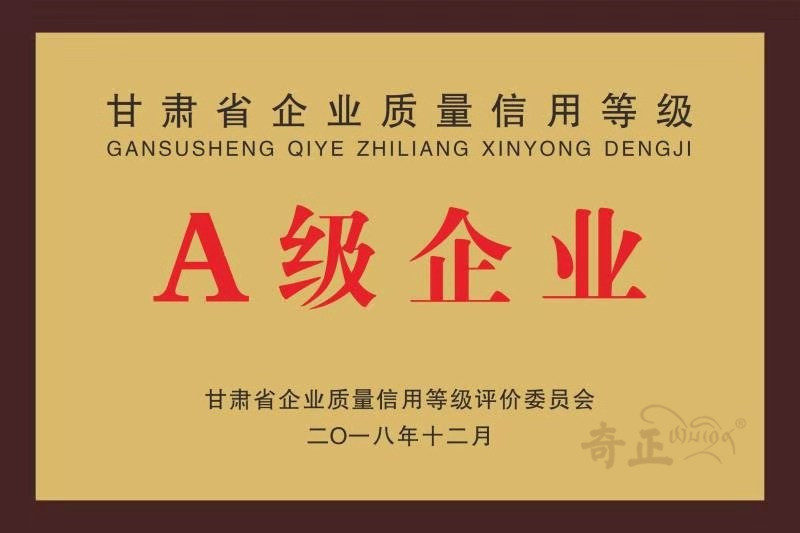 甘肅省質(zhì)量信用等級(jí)A級(jí)企業(yè)